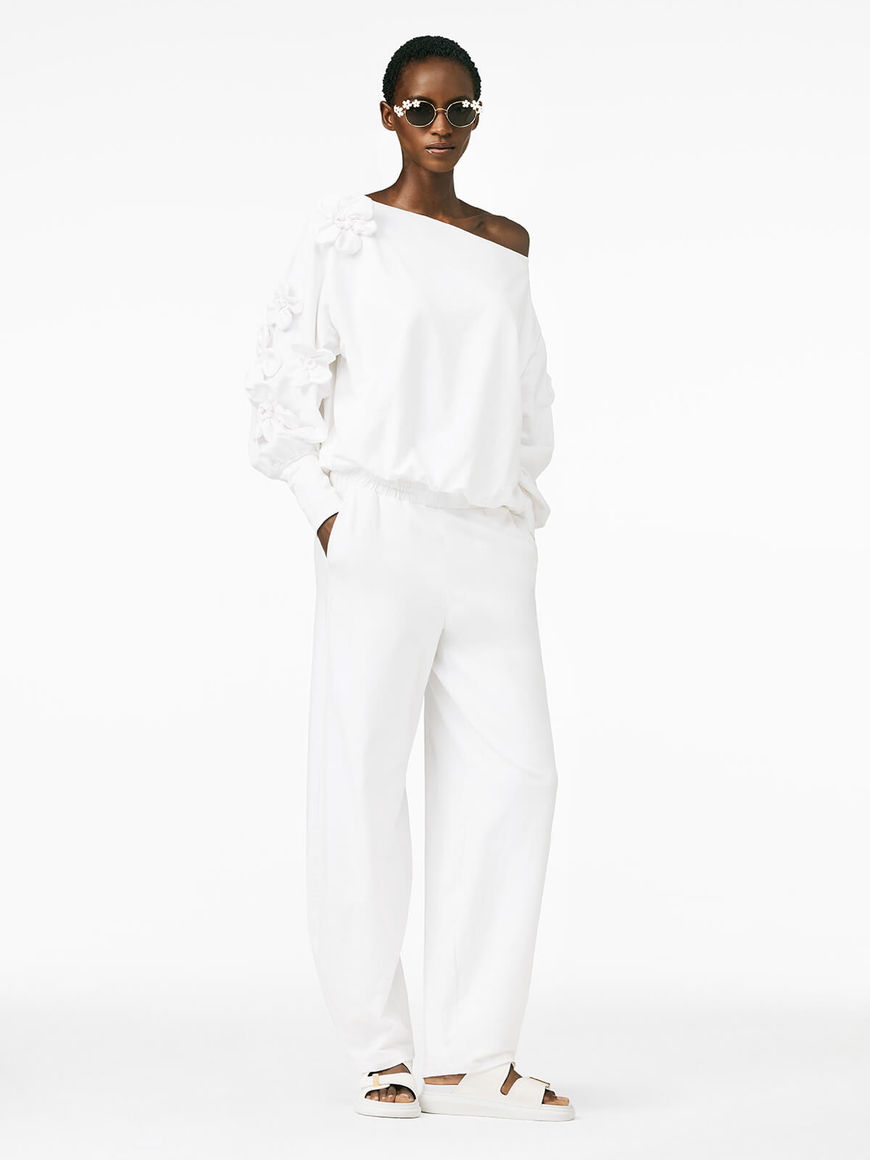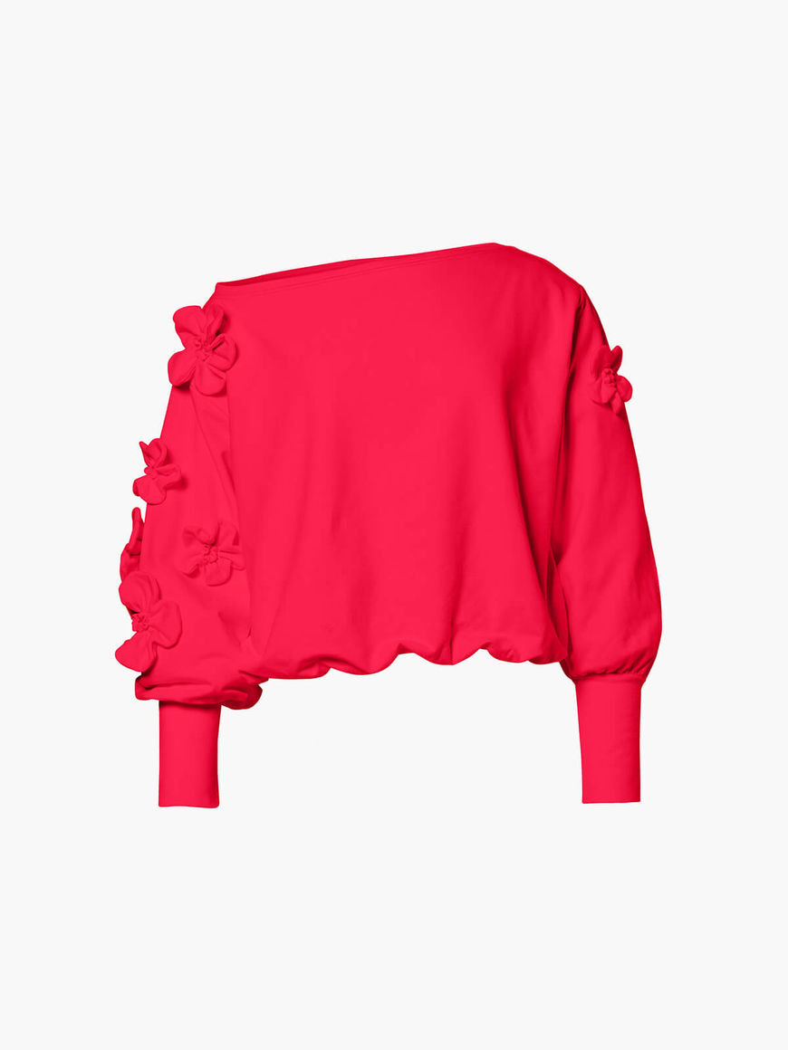 - Blumenapplikation auf dem Oberteil und den Ärmeln