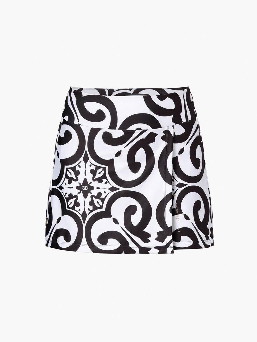 - Schwarz-weißer Capri-Fliesen-Print über die gesamte Fläche