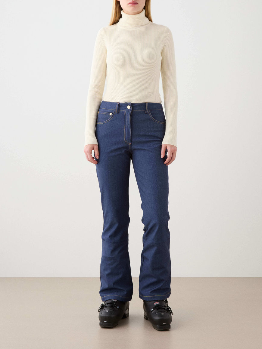Die Western Ski Pant vereint alpine Performance mit einem verspielten Twist. Gefertigt aus Softshell-Material und digital mit einem Denim-Design bedruckt, vermittelt sie den Look klassischer Jeans und bietet gleichzeitig echte technische Funktionalität. Mit enger 5-Taschen-Passform, Gürtelschlaufen, Reißverschluss-Einsatz und Schneefängen ist sie perfekt für Pulvertage – Cowboy-Spirit inklusive. Kombiniere sie mit der Western Ski Jacket für das ultimative, rodeo-inspirierte Ski-Outfit.